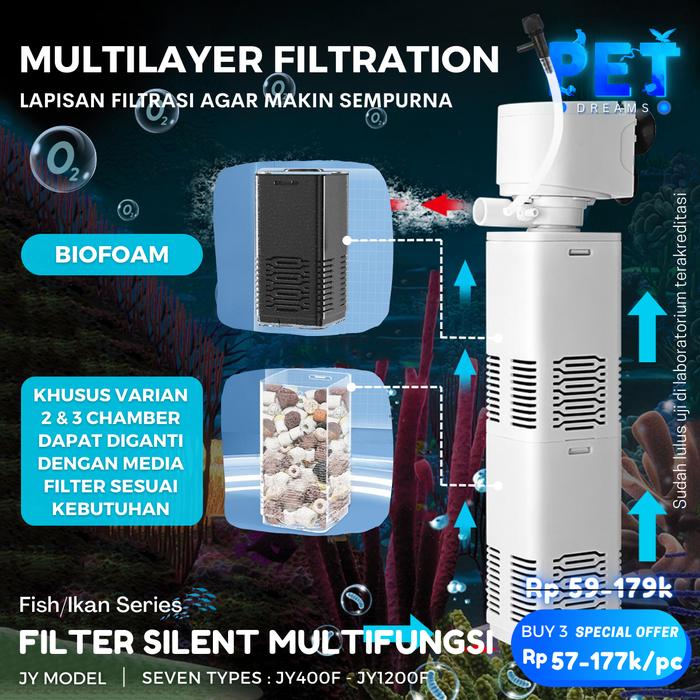 POMPA INTERNAL FILTER AIR AQUARIUM AKUARIUM CELUP SUBMERSIBLE SUSUN JY - 1200F 3CHAMBER