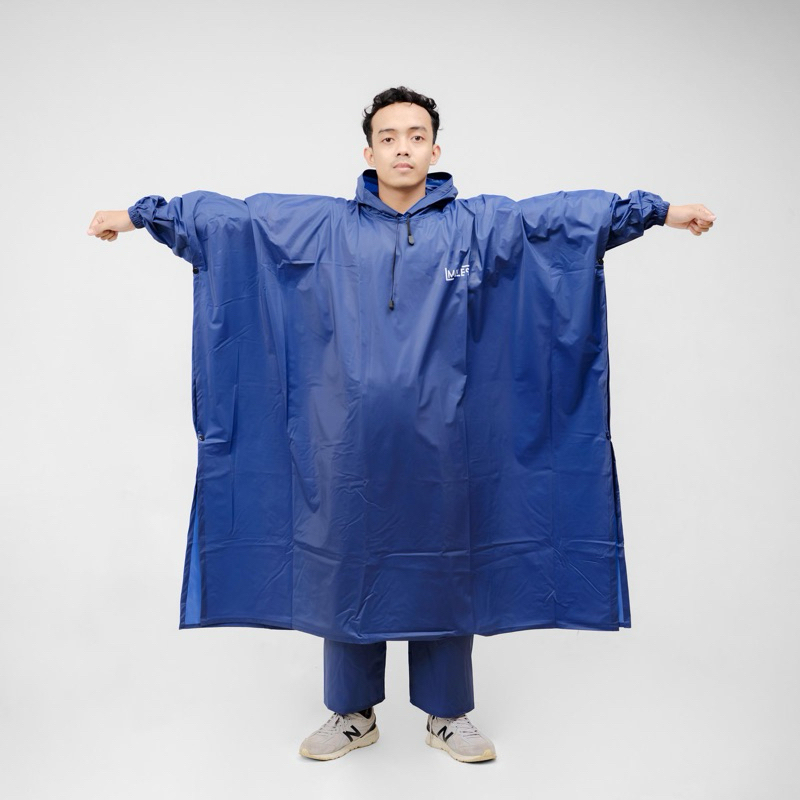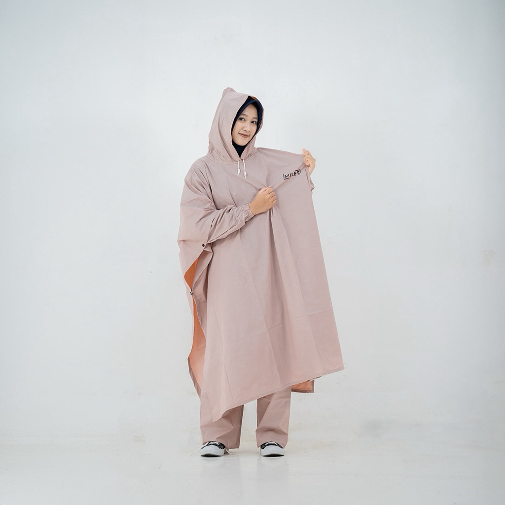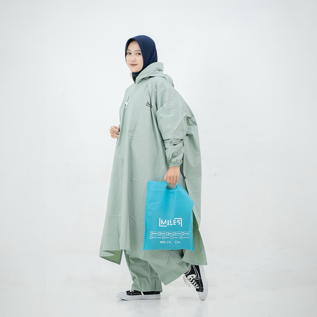Miles Setelan Jas Hujan Ponco Motor Unisex Waterproof PVC Anti Rembes Hoodie Polos Logo Ringan