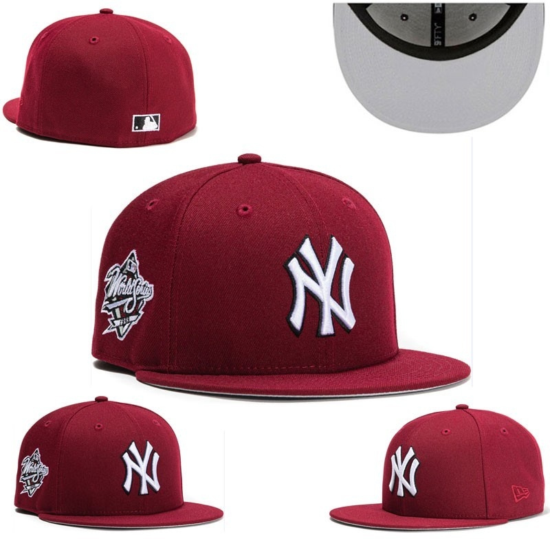 Topi Snapback Fitted NY New York Maroon White World Series Bordir Build Up Caps
