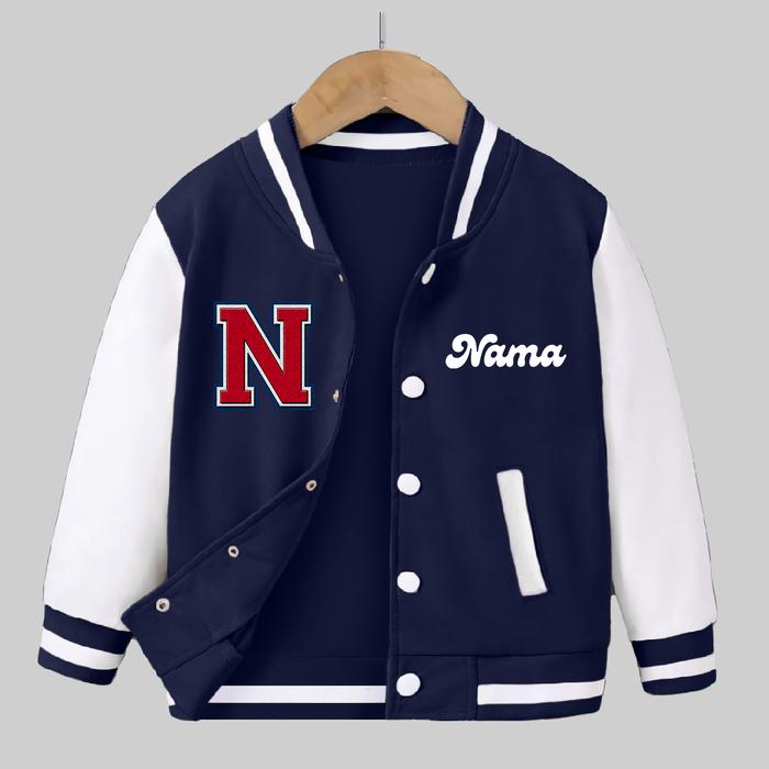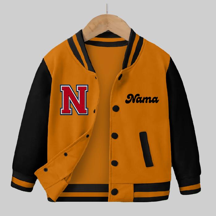 JAKET VARSITY BASEBALL CUSTOME INISIAL NAMA ANAK LAKI LAKI USIA 2-13 TAHUN JACKET BISBOLL FASHION ANAK - KUBUS HITAM, M (2-3 TAHUN)