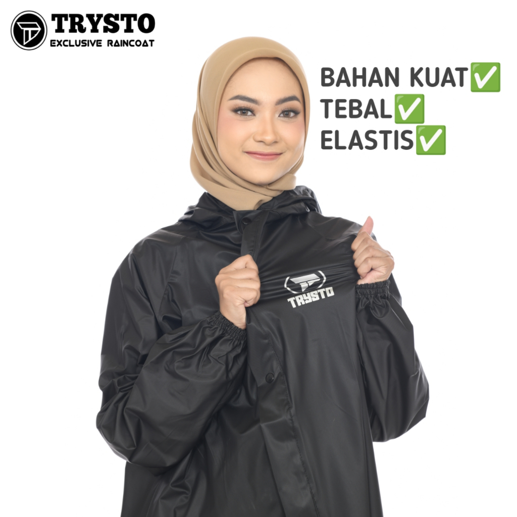 Jas Hujan Raincoat Setelan Pria Wanita Dewasa Bahan Kuat Tebal Elastis Anti Rembes Original By Trysto