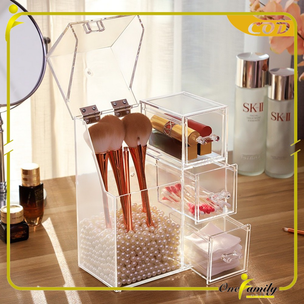 ONE-K18 Rak Organizer Multifungsi Kotak Penyimpanan Brush Make Up + Mutiara Rak Anting Acrylic
