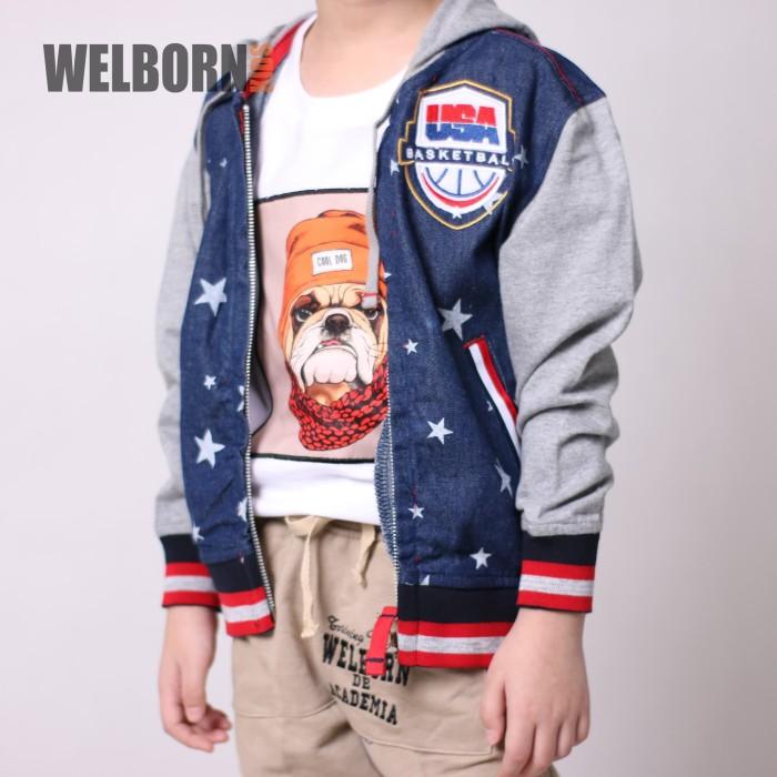 WELBORN KIDS JAKET HOODIE BIRU BINTANG BASKETBALL ANAK LAKI - 2