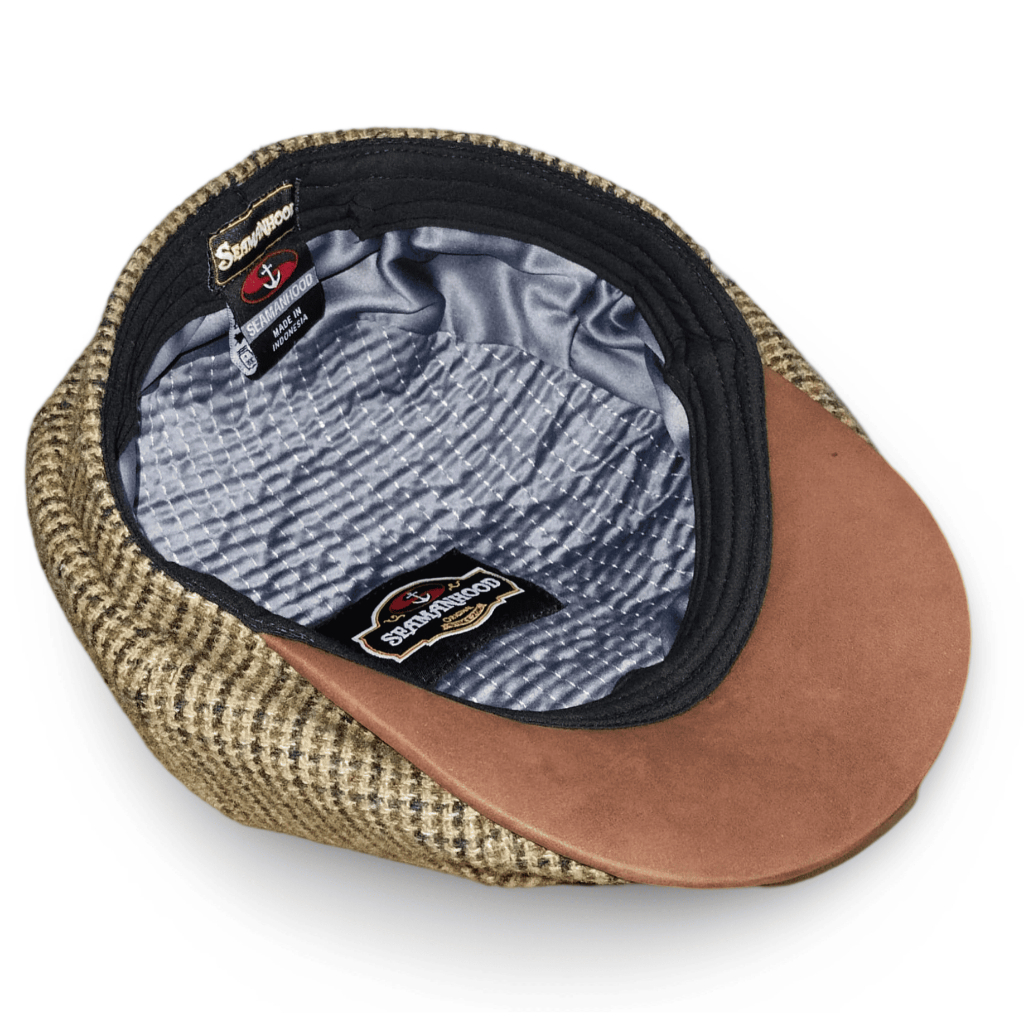 Topi Newsboy Hat Gatsby Style Original Seamanhood Flat Cap Wool Tweed Chesnut Kombinasi Kulit Vintage