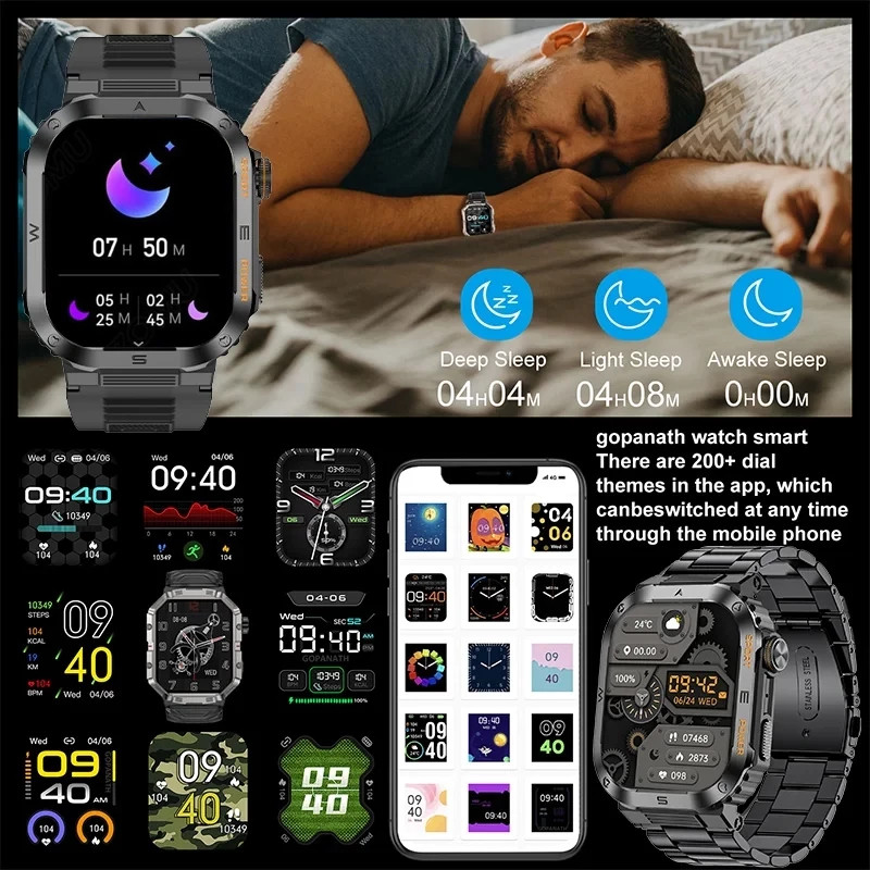 Jam Tangan Pintar Pria Asli 100+ Olahraga IP68 Tahan Air Panggilan Bluetooth Deteksi Denyut Jantung Jam Tangan Pintar Militer