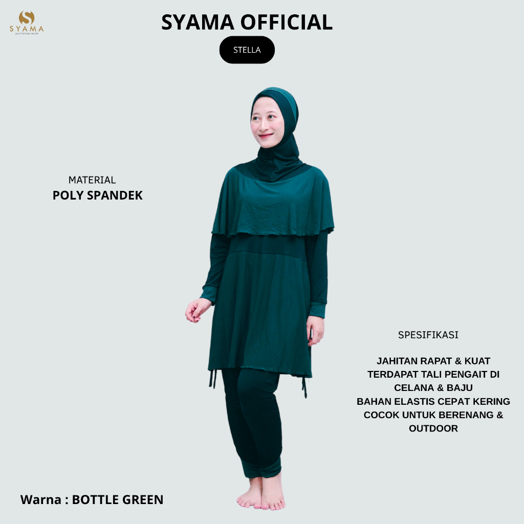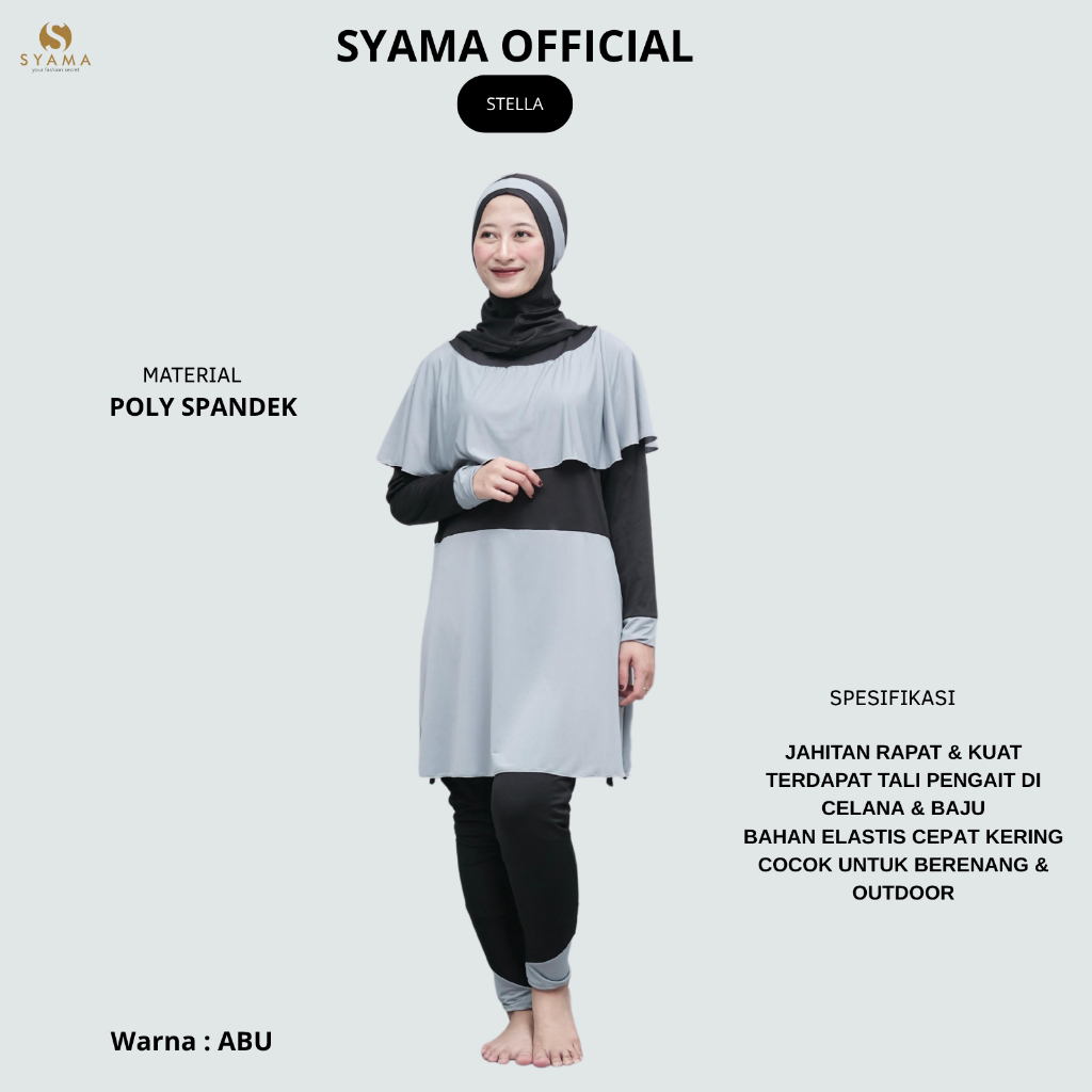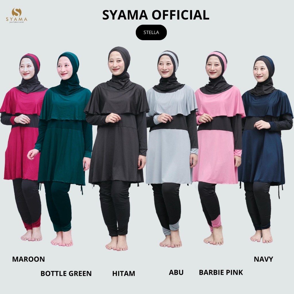 BAJU RENANG MUSLIMAH STELLA SATU SET KERUDUNG - 6 VARIAN WARNA FAVORIT - HARGA GROSIR