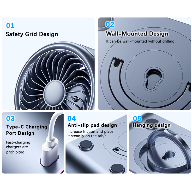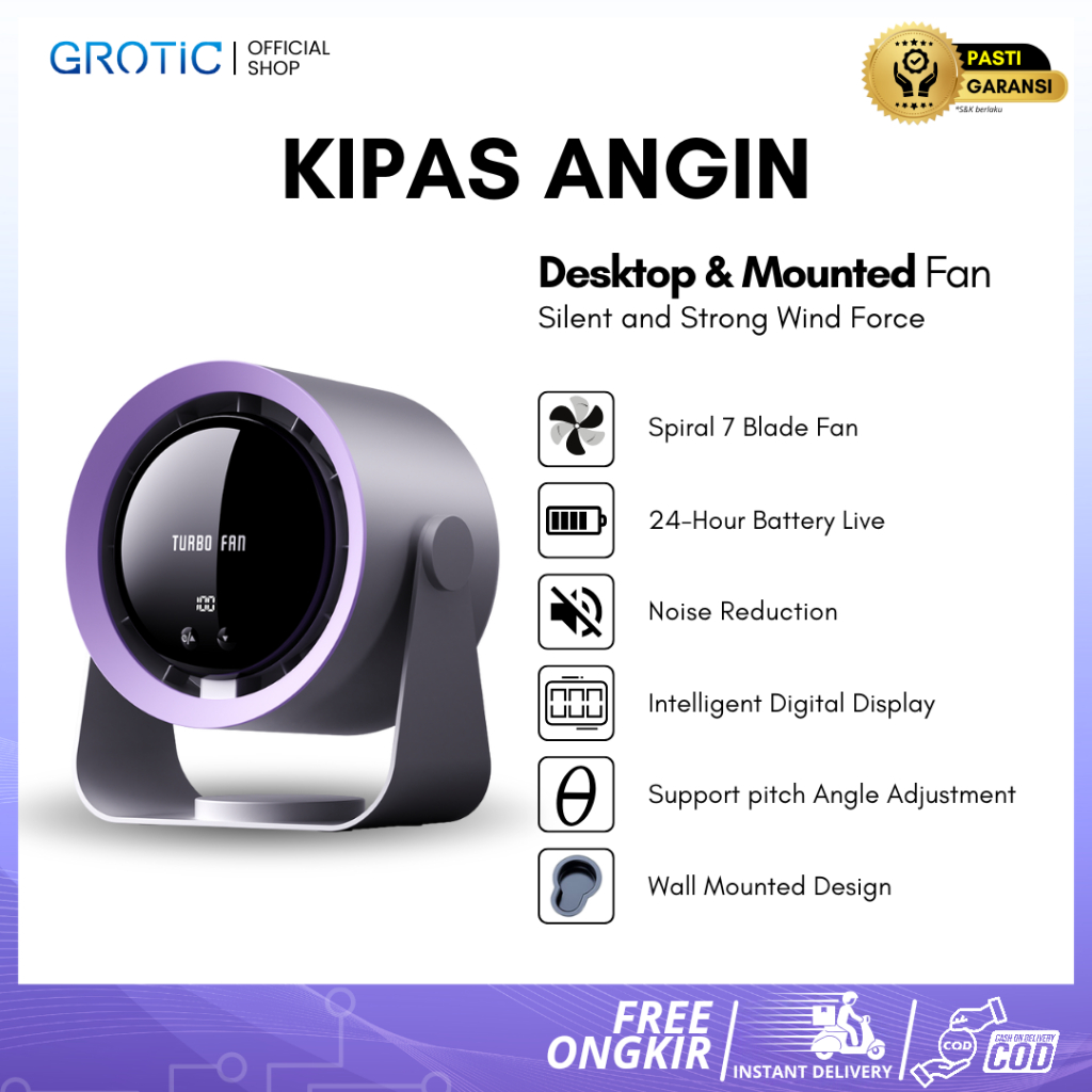GROTIC Kipas Angin Meja & Dinding Mini Portable Rechargeable Angin Kencang Sunyi Kokoh