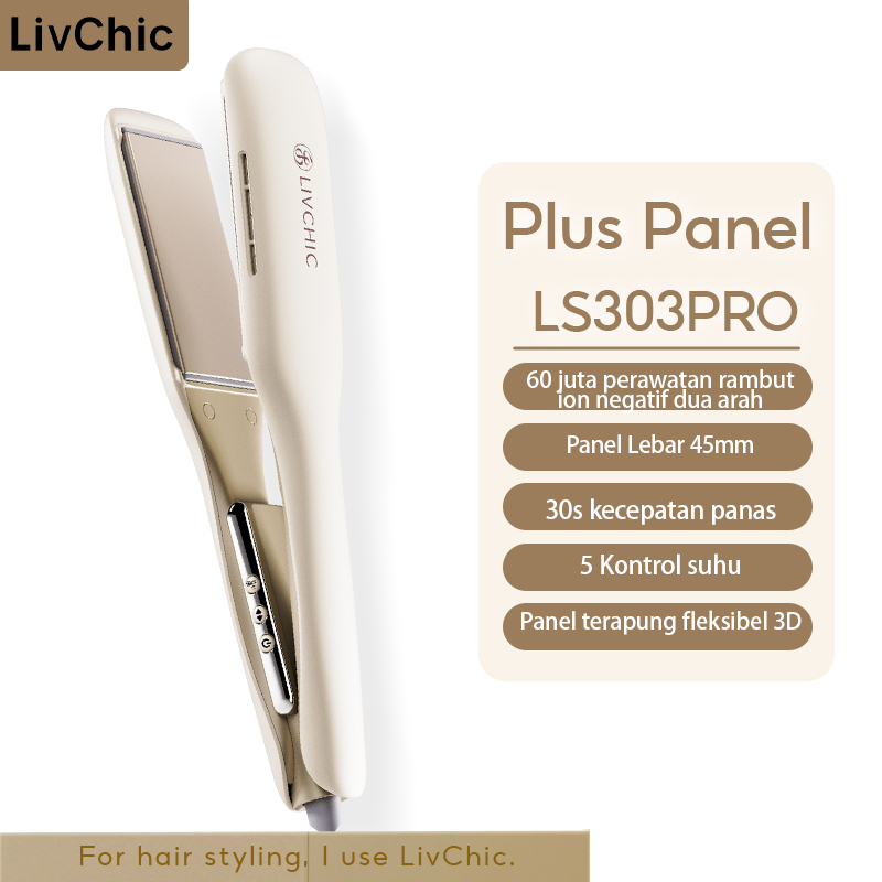 LivChic Official 2IN1 LS303 PRO Catokan Rambut 45MM Panel Meluruskan Keriting Alat pengeriting rambut