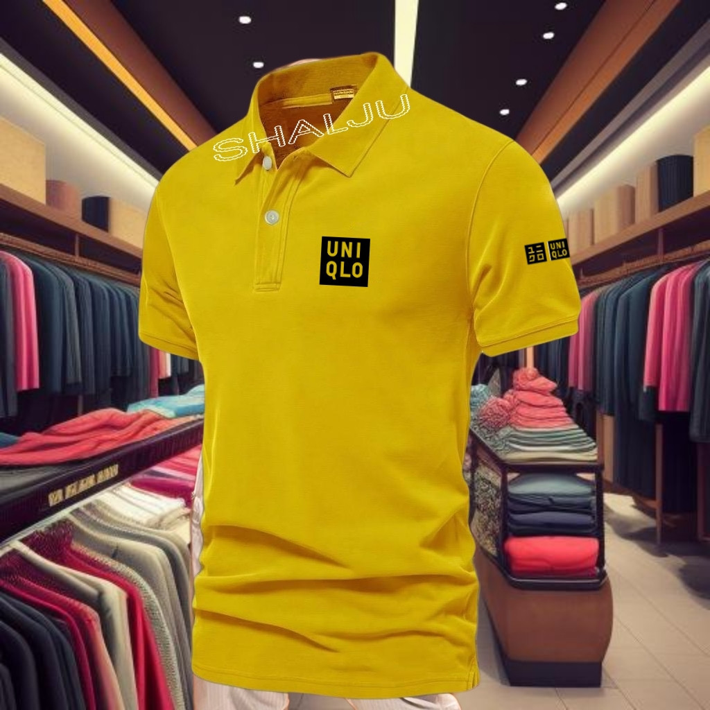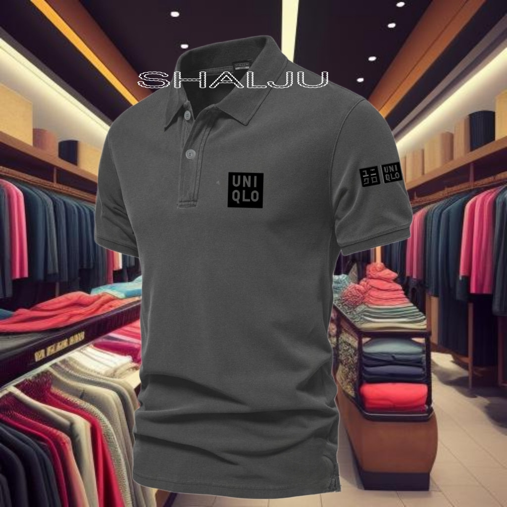 Kaos Poloshirt un1qlo Lengan Pendek Tex Hitam /Baju Kaos Kerah Dewasa /Poloshirt Pria Dan Wanita