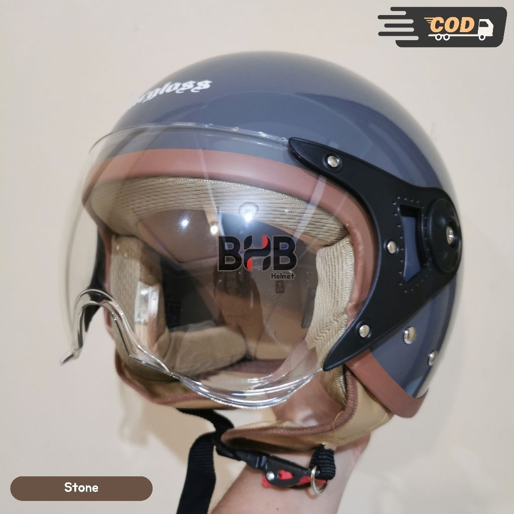HELM BOGO HIJAB WANITA ANTI PUSING INCLUD KACA PILOT BENING - Helm Bogo Dewasa Wanita SNI PREMIUM