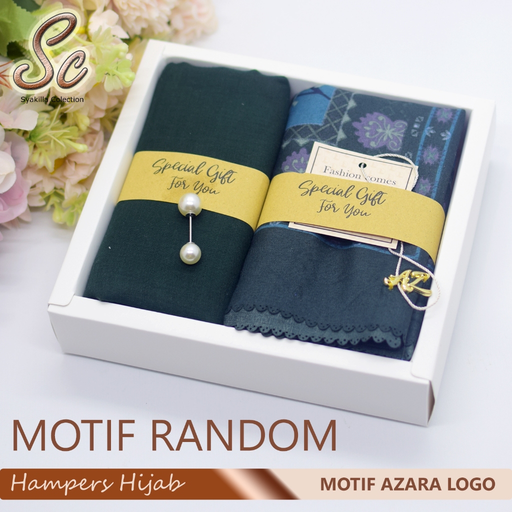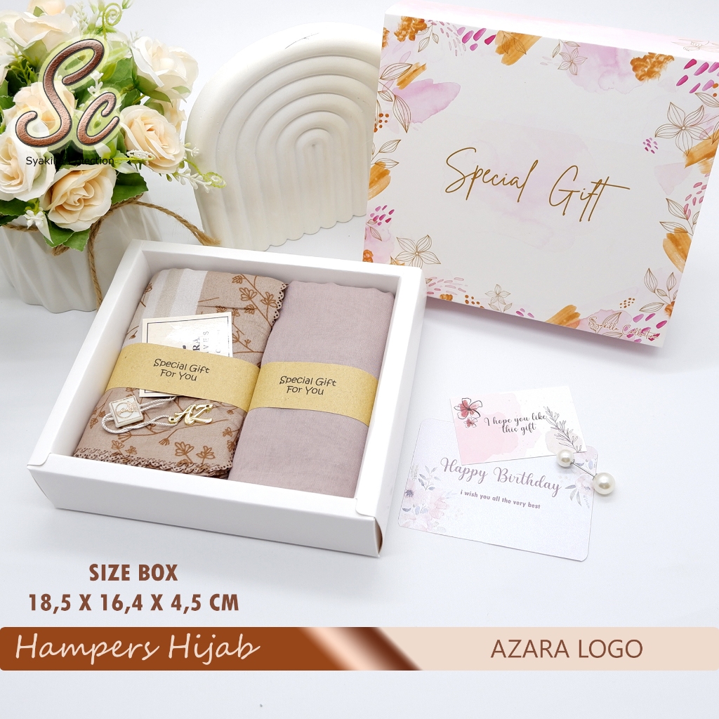 Hamper hijab Segiempat Azara motif metal logo | Hadiah guru,wedding,ulang tahun , idul fitri dll