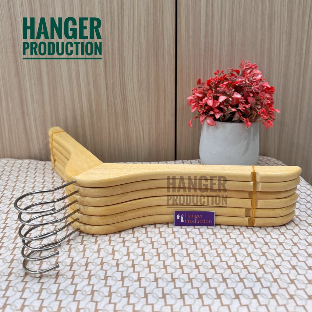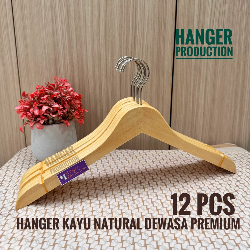 ( TERMURAH ) 12 PCS / 1 LUSIN HANGER KAYU NATURAL DEWASA KUALITAS PREMIUM
