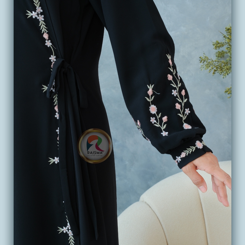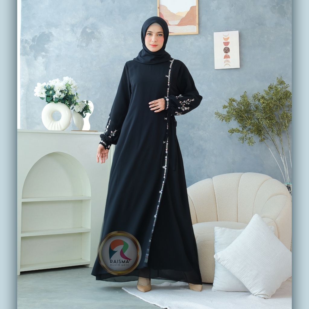 Ivanna Gamis Hitam Ceruti Babydoll Overslah Kait Samping Aplikasi Bordir
