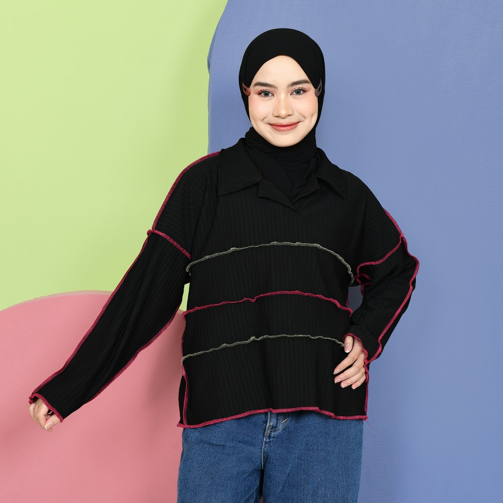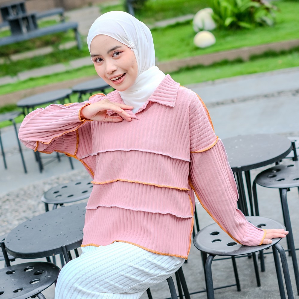 Mybamus Yuna Playfull Knit Tops – Atasan Muslim Wanita – Blus Knit Lengan Panjang