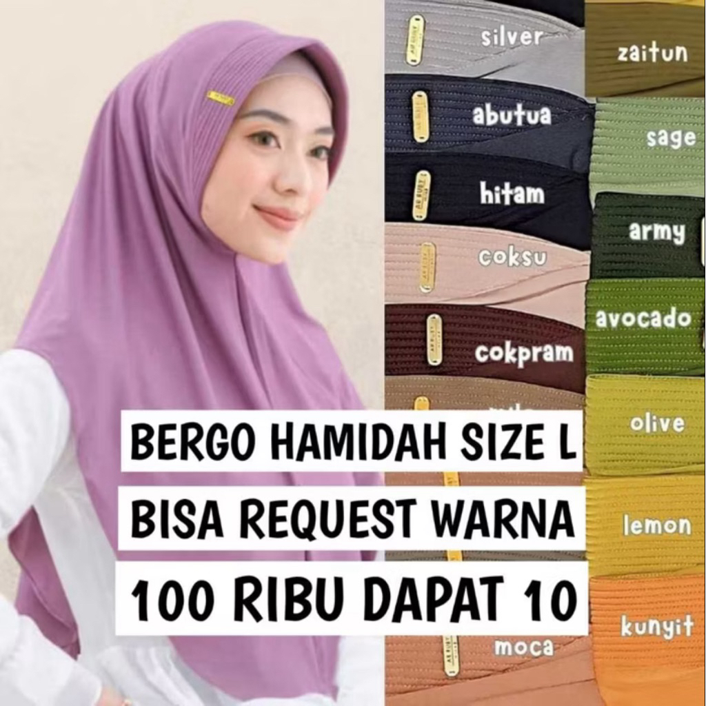 Promo (10 PCS 100rb) Jilbab Bergo Hamidah Size L Label Akrilik Menutup Dada Kerudung Pad Busa Tebal Hijab Ca