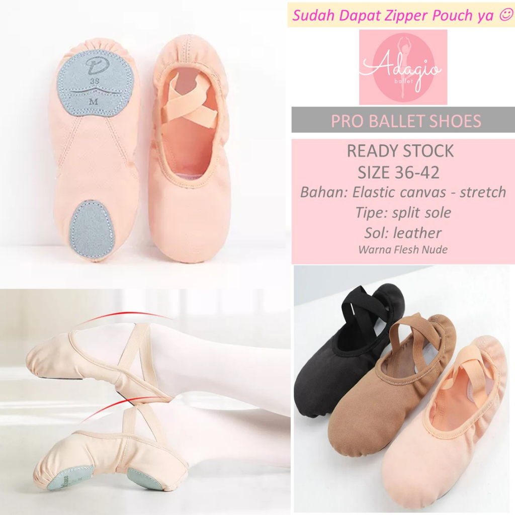 PRO BALLET SHOES - SEPATU BALET PREMIUM ELASTIC CANVAS UTK YOGA PILATES GYM ALAS KAKI dupe so danca