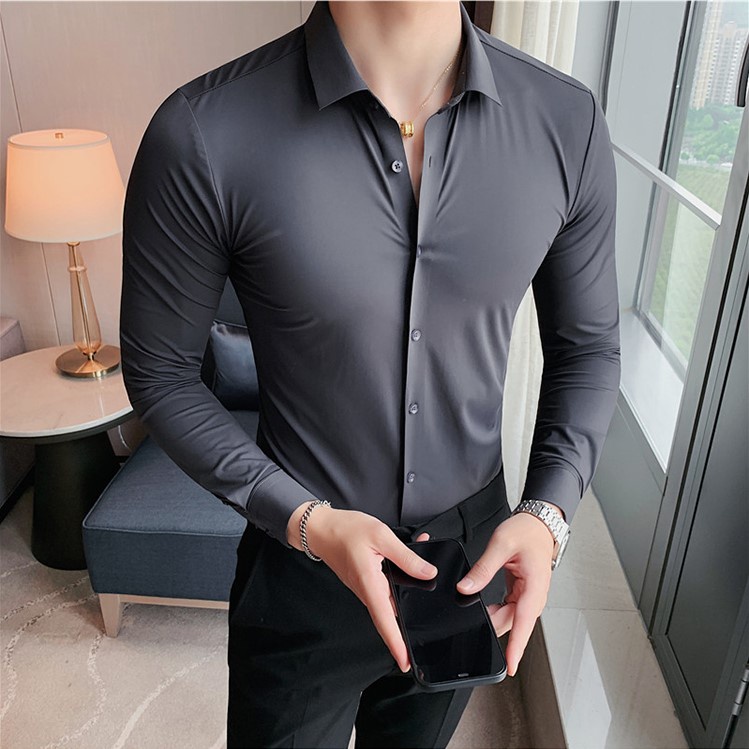 zafos.id - Kemeja Pria Dewasa Lengan Panjang Slimfit Formal Polos Bahan Katun Elastis