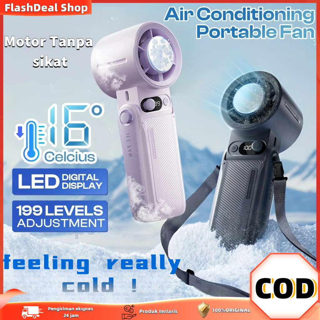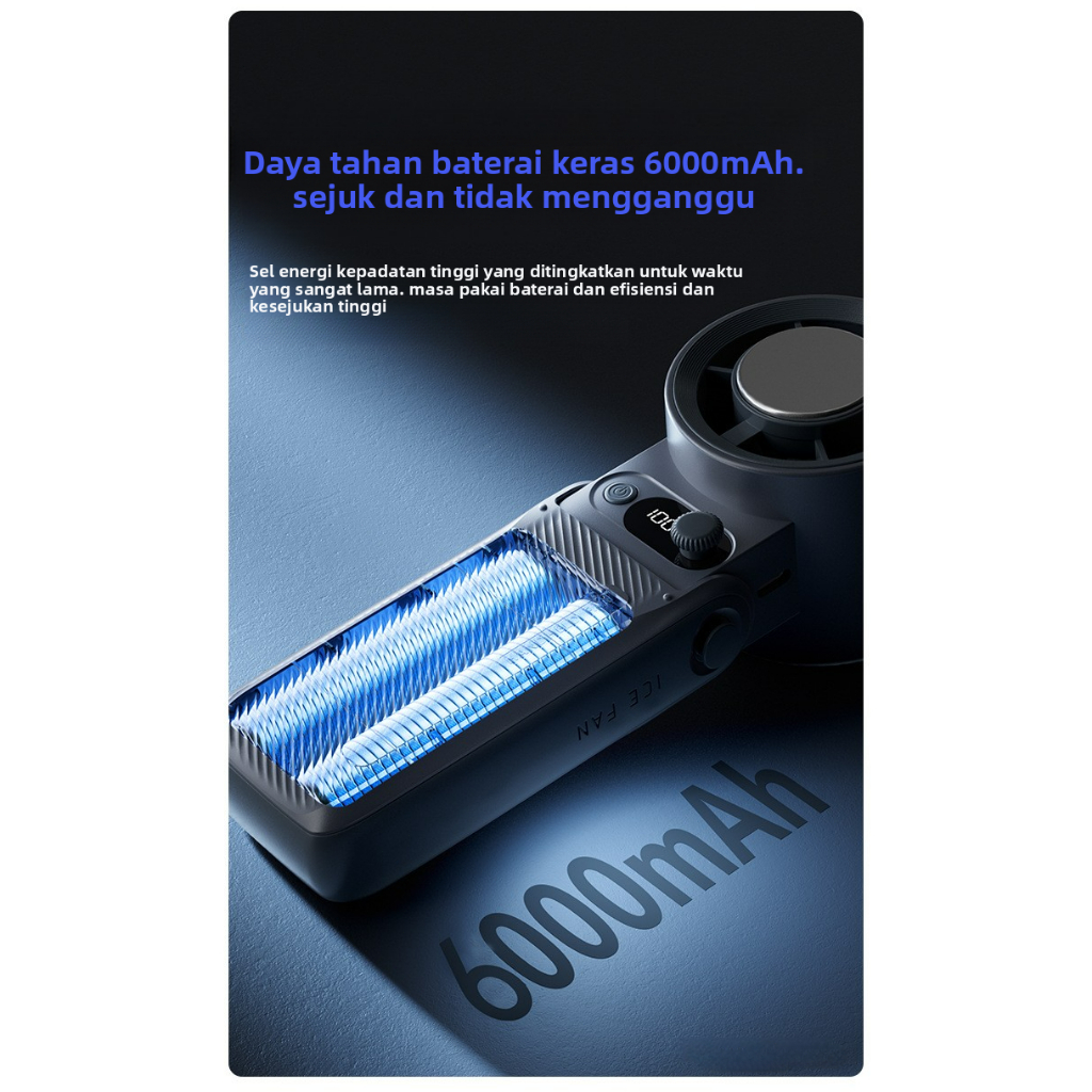 【】Kipas Angin Portable USB Tahan Lama 6000mAh 30000RPM Kipas Pendingin Portable Lipat Leher 199-Speed Wind Adjustable Turbo Fan LED Display Handheld Fan Mini