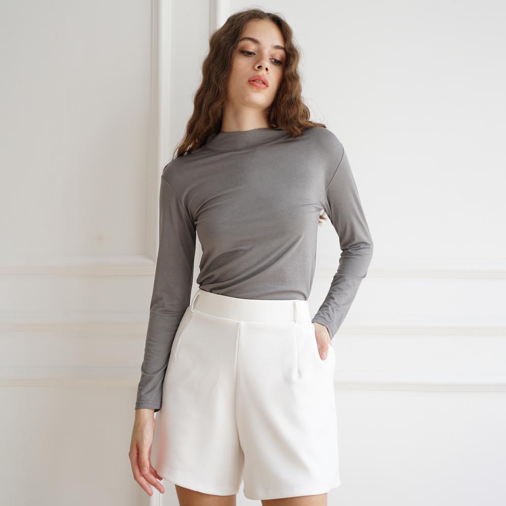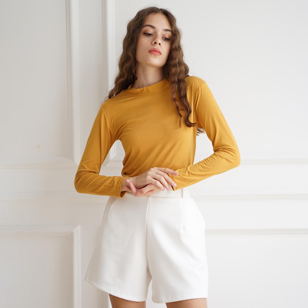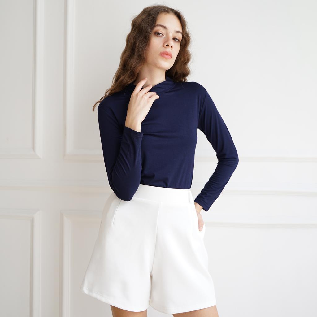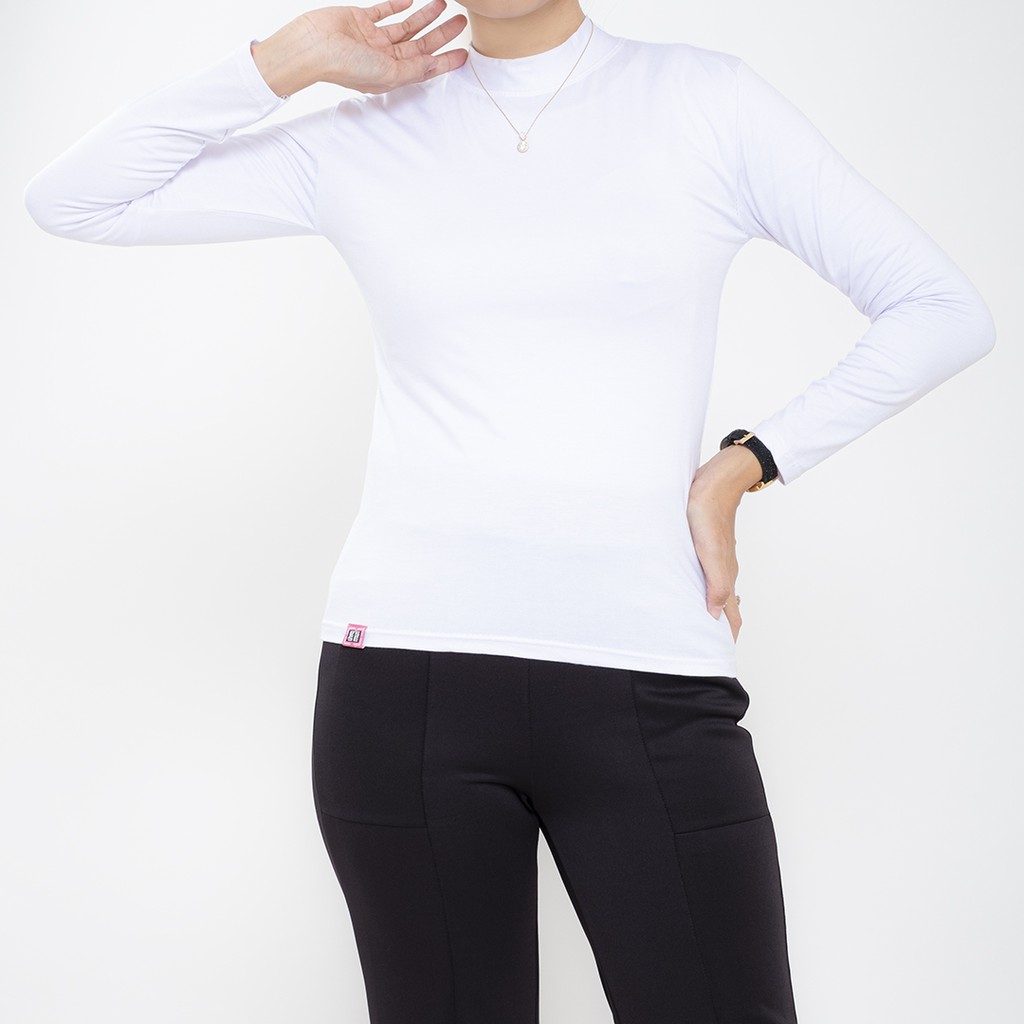 HaymeeIDN - Baju Manset Wanita Lengan Panjang Inner Dalaman Cewek Bahan Kaos Hitam dan Putih