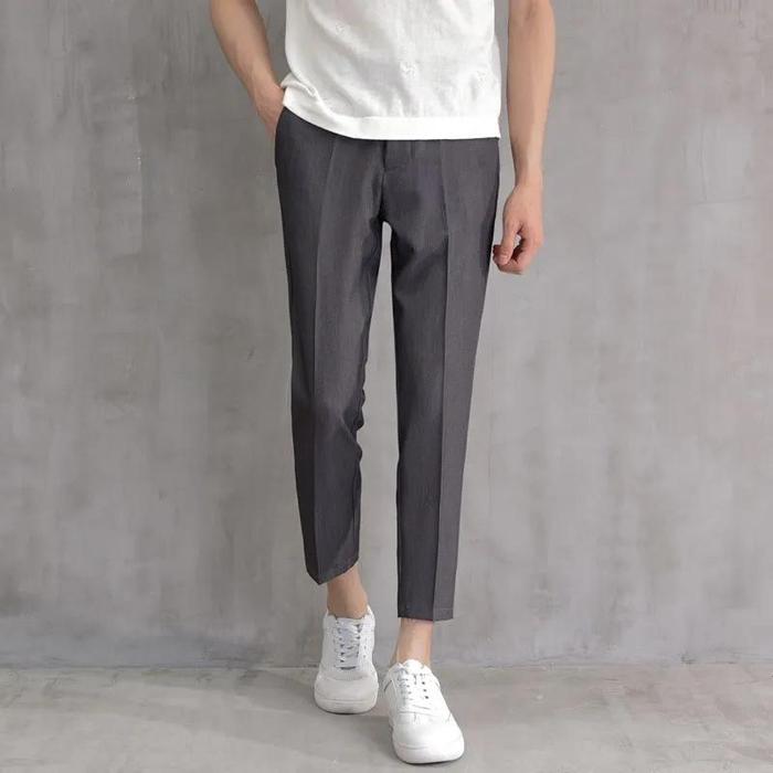 Kasual Celana Grey Ankle Pant Classic Celana Pria Panjang Pendek Cargo Slim Fit Chinos Standar Jumbo