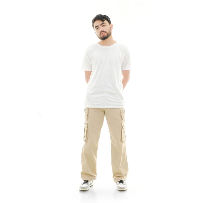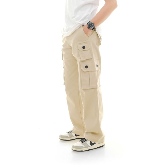Qwertylife Long Pants Cargo Reguler Twill Pocket Cream Celana Pria Panjang Pendek Cargo Slim Fit