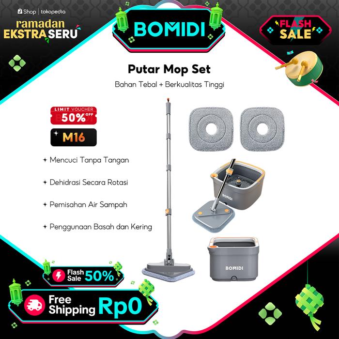 [NEW] BOMIDI M16 Alat Pel Putar Mop Set Spin Mop Lazy Mop Hand Wash Free Self-Cleaning Water Save