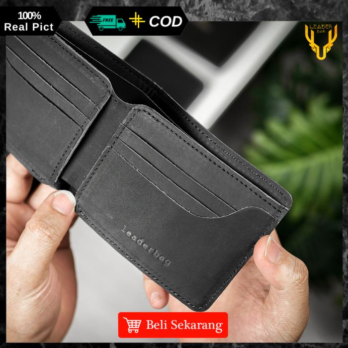 Dompet Lipat Pria Kulit Sapi Asli Leaderbag Hitam Khaki Premium Wallet Pendek Branded Terbaru
