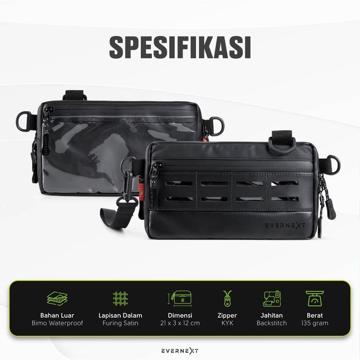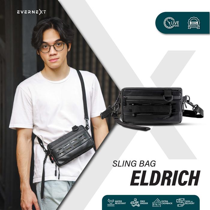 EVERNEXT Tas Kulit Selempang Hitam Pria Anti Air Sling Pouch Wallet Eldrich Waterproof Sling Bag