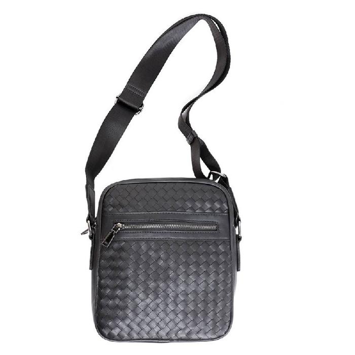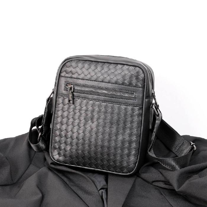 Leather Concept HENZ Tas Selempang Anyaman Kulit Pria Tas Kulit Cowok Hitam