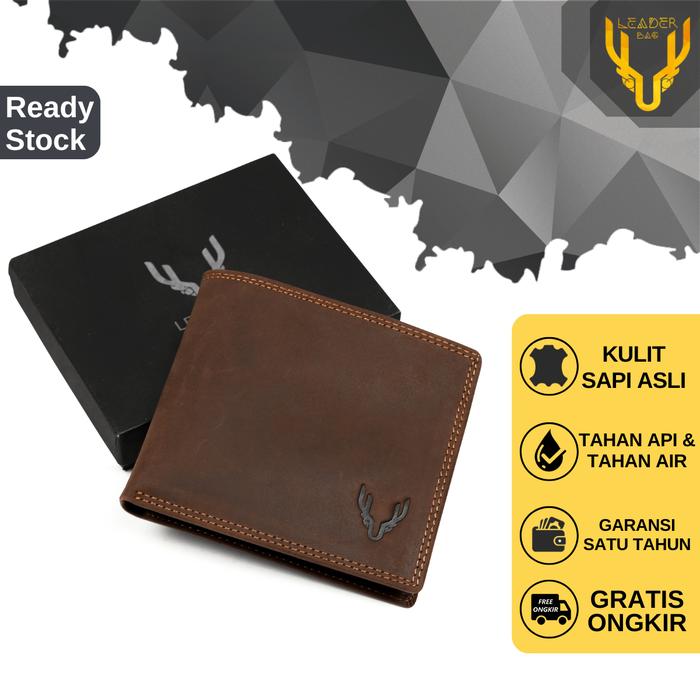 Leaderbag Dompet Lipat Pria Kulit Sapi Asli Warna Cokelat Terbaru Wallet Pendek Cowok Keren Branded