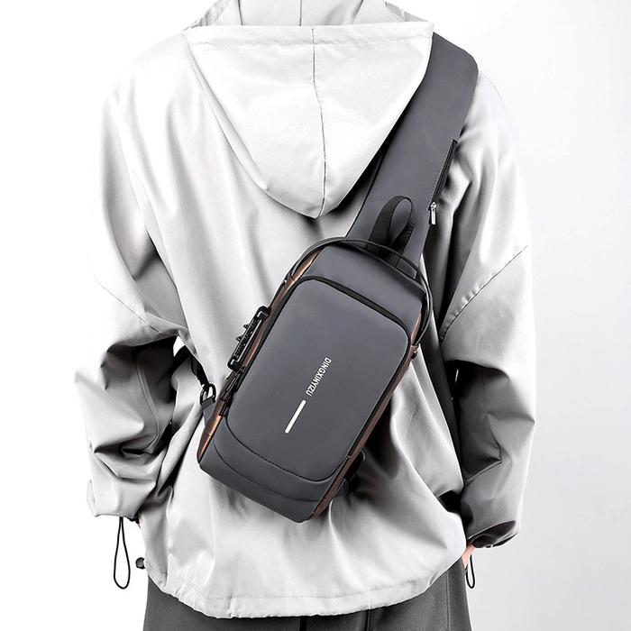 Techdoo Tas Selempang Pria USB Charger Slingbag Pinggang Bag Tas Bahu Dada Cowok Waterproof TS717