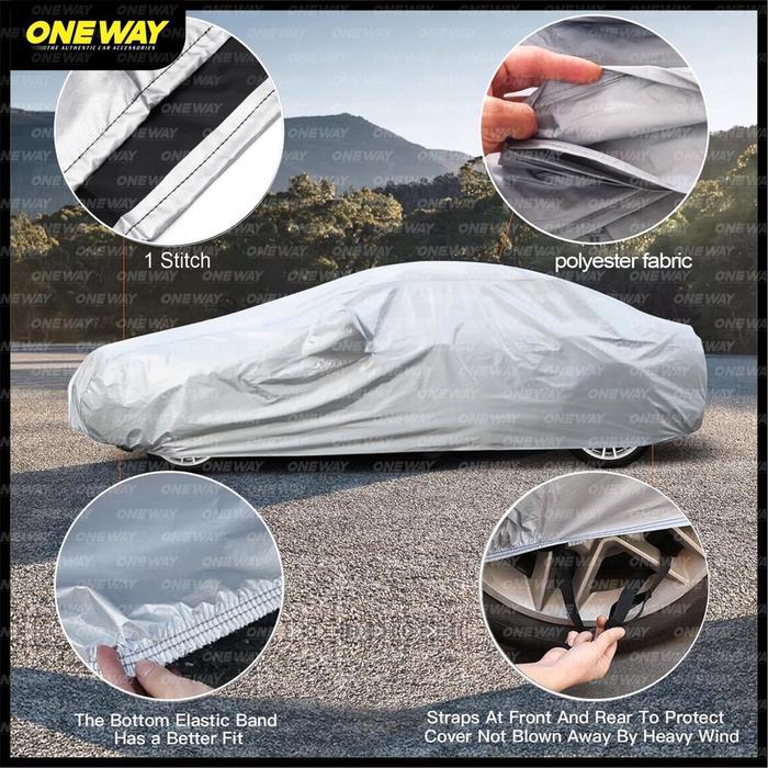 ONE WAY Body Cover Mobil Sarung Penutup Mobil Nissan ELGRAND Polyesther Silver Waterproof Anti Air