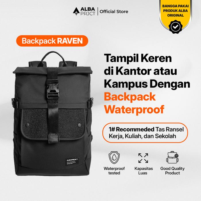 Tas Ransel Pria Wanita ALBA PROJECT Backack Raven Sekolah Kuliah Kerja Waterproof Anti Air