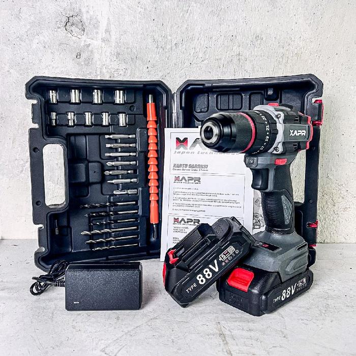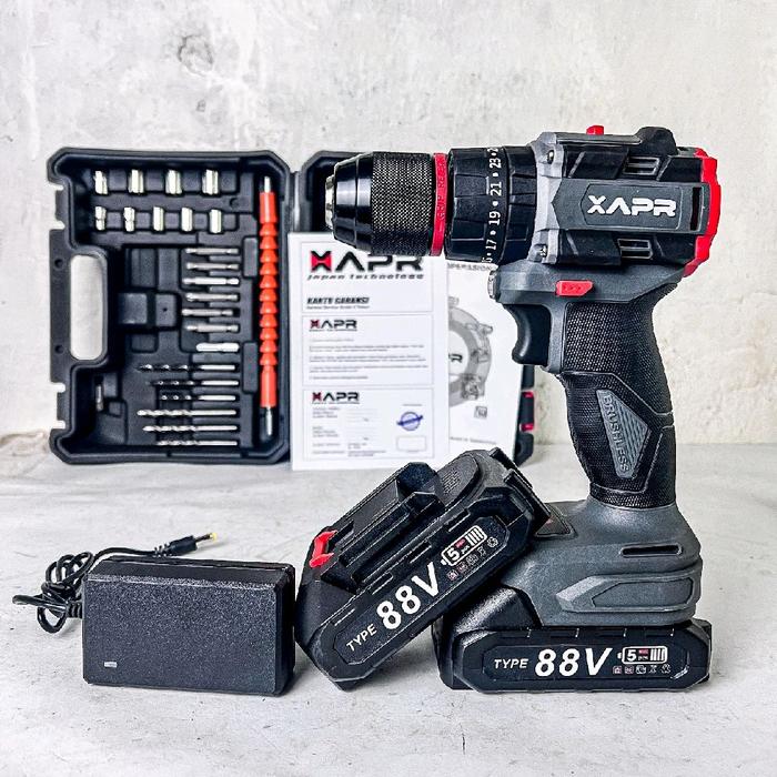 APR RAJA BOR impact drill BRUSHLESS TYPE AP34+ 13mm keyless auto lock 2baterai lxt 88v mesin bor