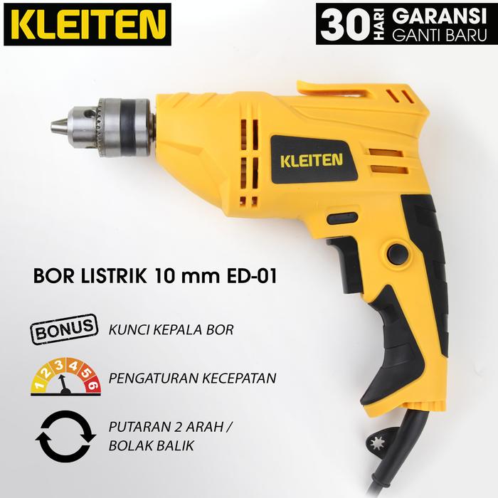KLEITEN Mesin Bor Listrik 10 Mm ED01 - Hand Electric Drill 10mm Reversible - Bor Tangan Bolak Balik