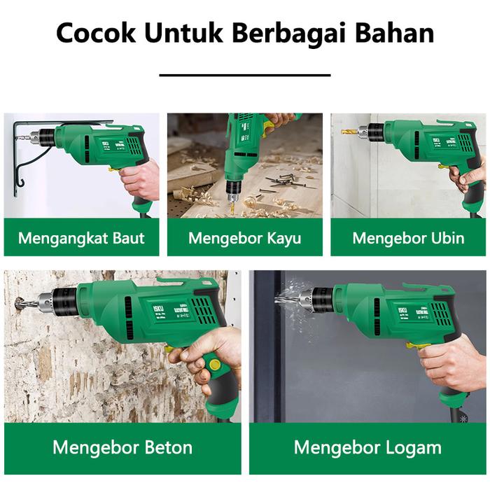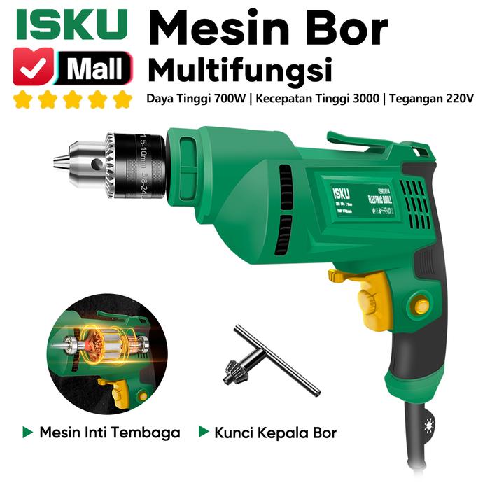 ISKU Mesin Bor Listrik 10mm 700W Bolak Balik Variable Speed - Bor Tangan Besi Kayu Electric Drill