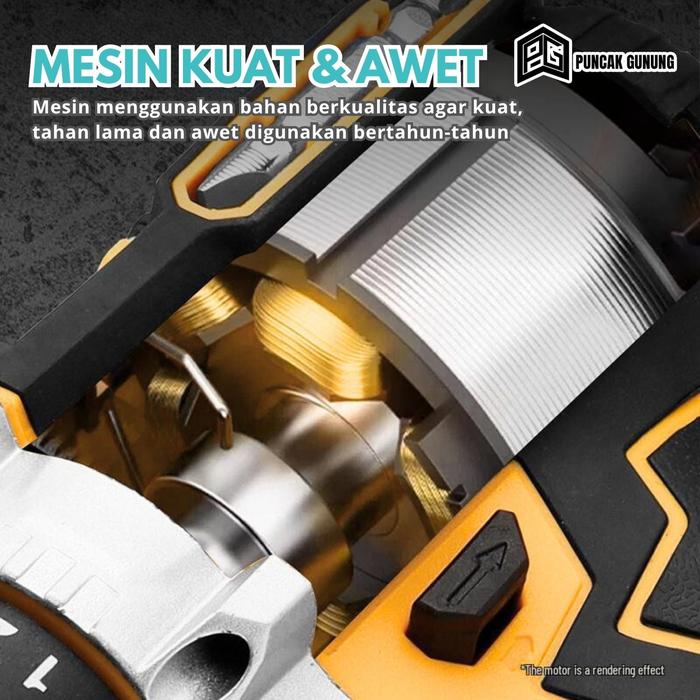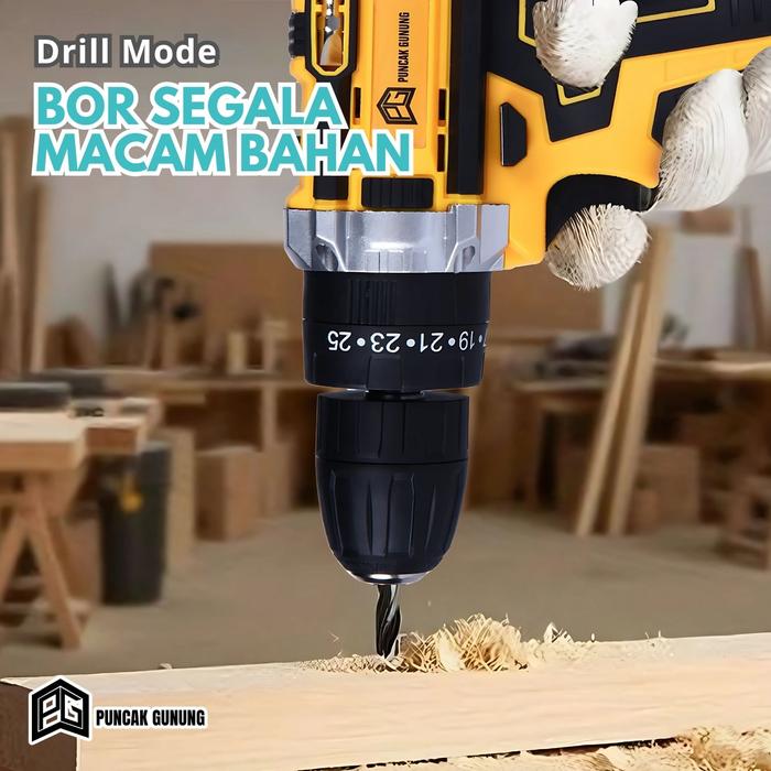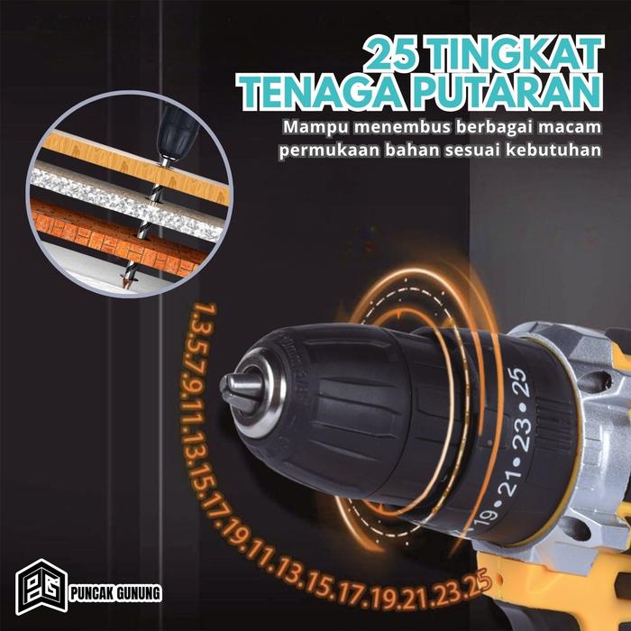 Puncak Gunung Mesin Bor Cordless 2 Baterai 21V 2.6Ah dengan 25 Tingkat Tenaga Putaran & Impact Mode