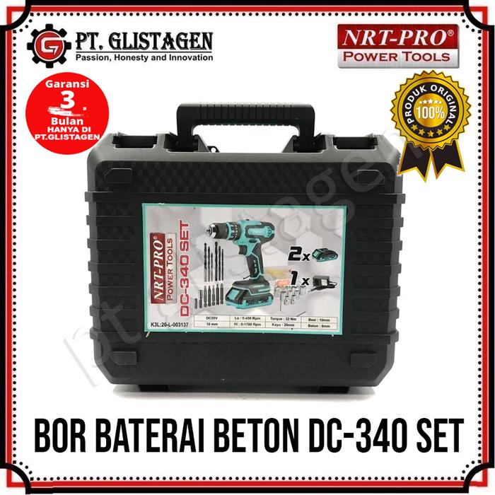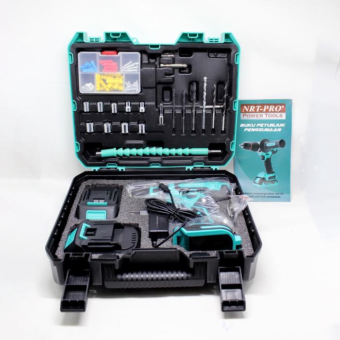 NRT PRO DC-340 Set Mesin Bor Baterai Cordless Drill Bor Tangan Impact Nrt Pro DC 340 Set
