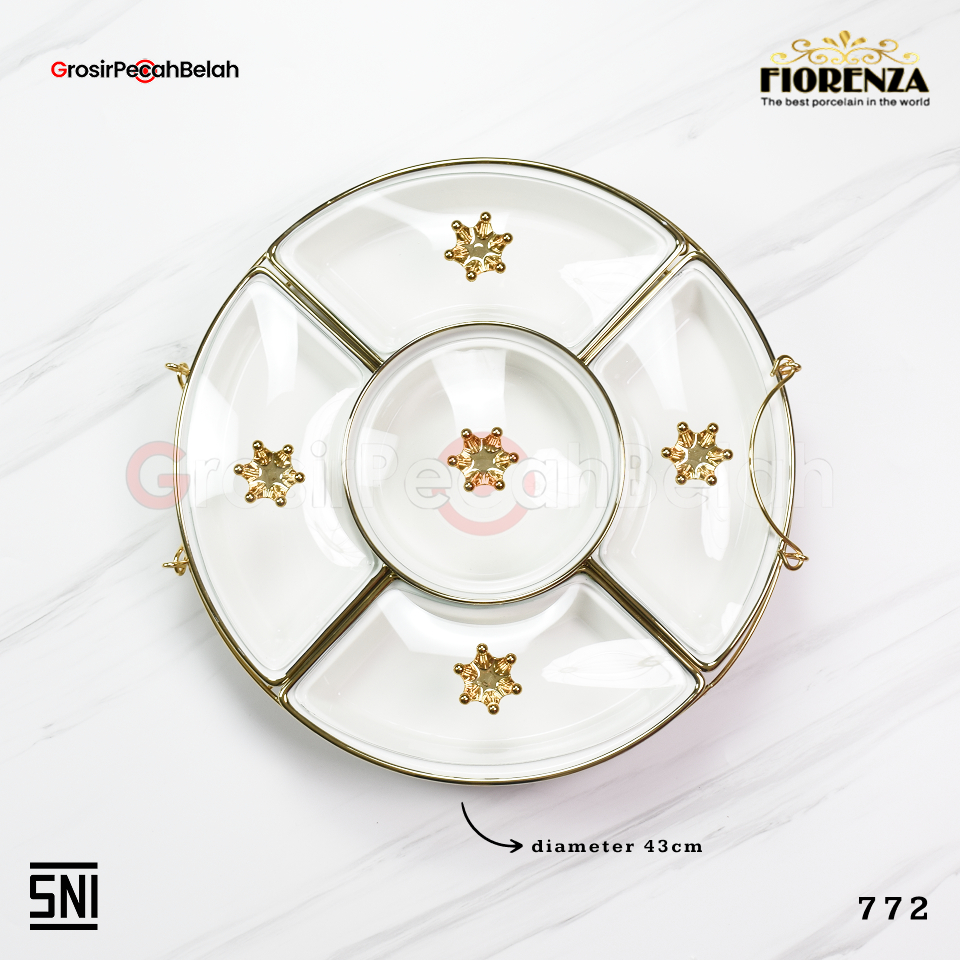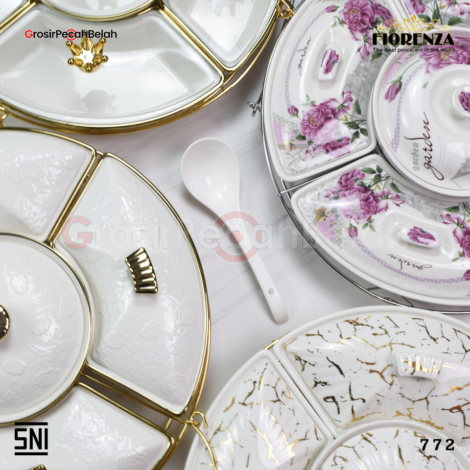 Fiorenza - Prasmanan Putar Keramik Set Wadah Saji Mewah Estetik | Motif Marble Linning Gold Bunga 772