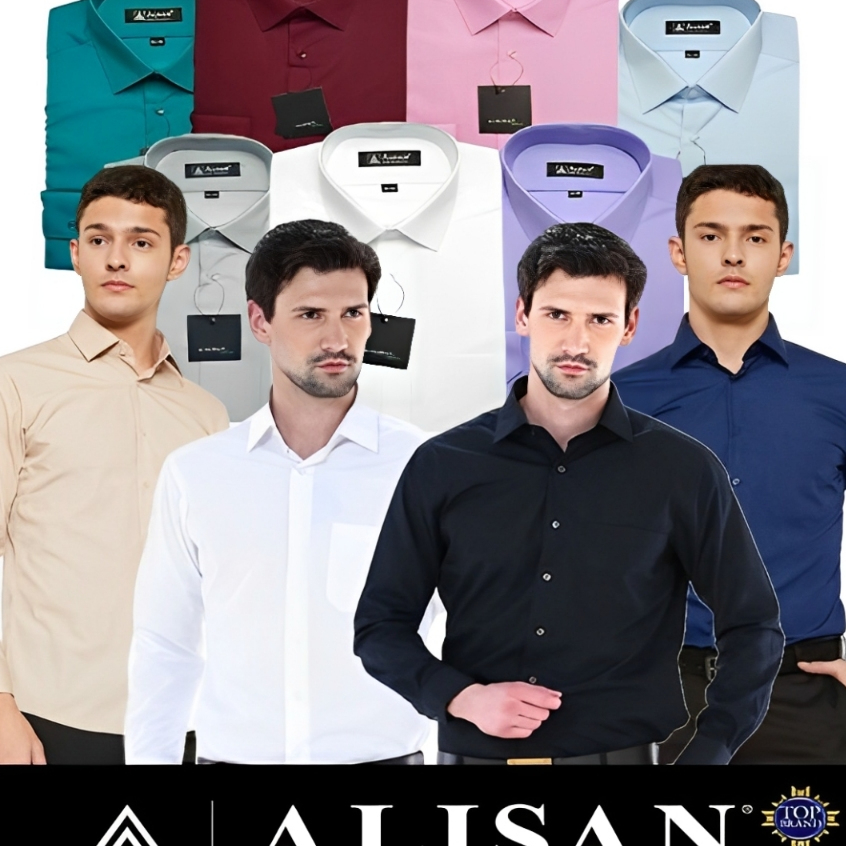Kemeja Formal Pria Polos Alisan Biru 2/Sofblue/BiruMuda Krah Berdasi Slimfit Lengan Panjang - Casual