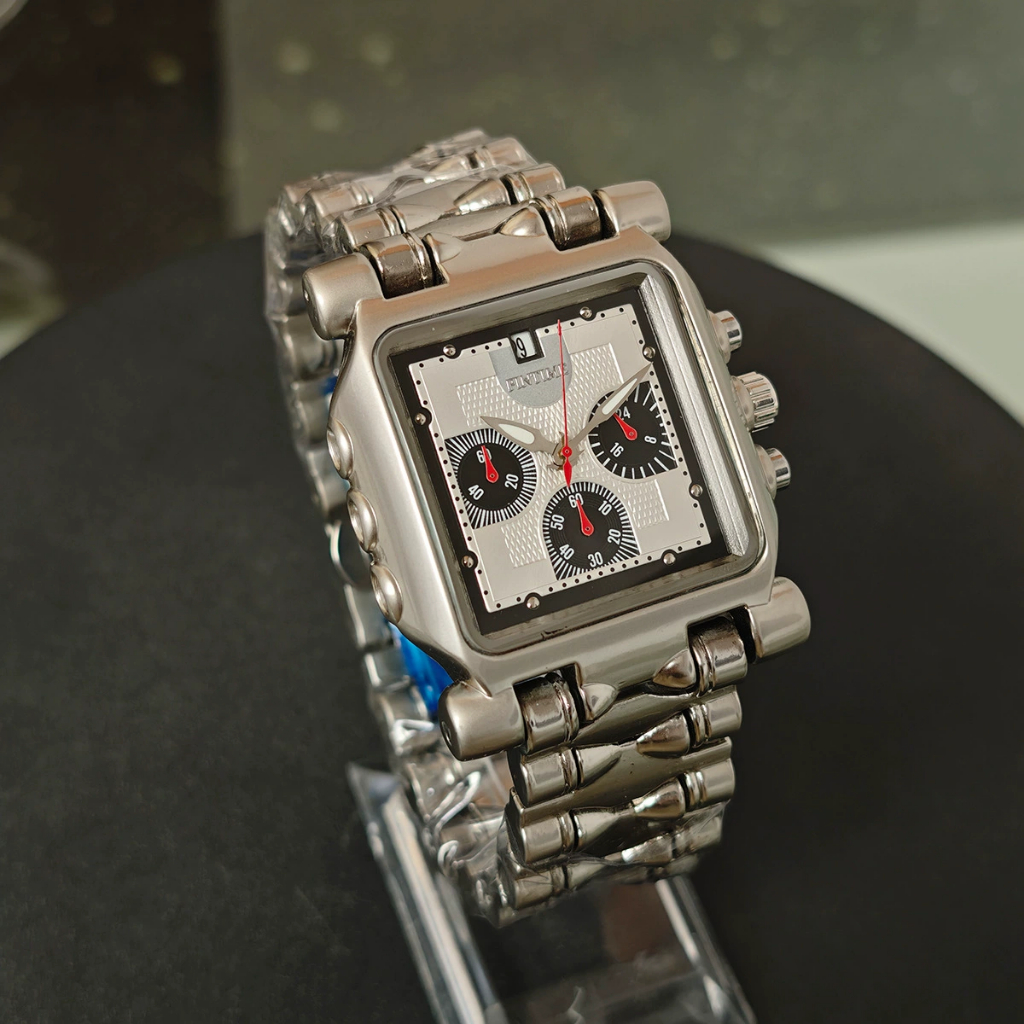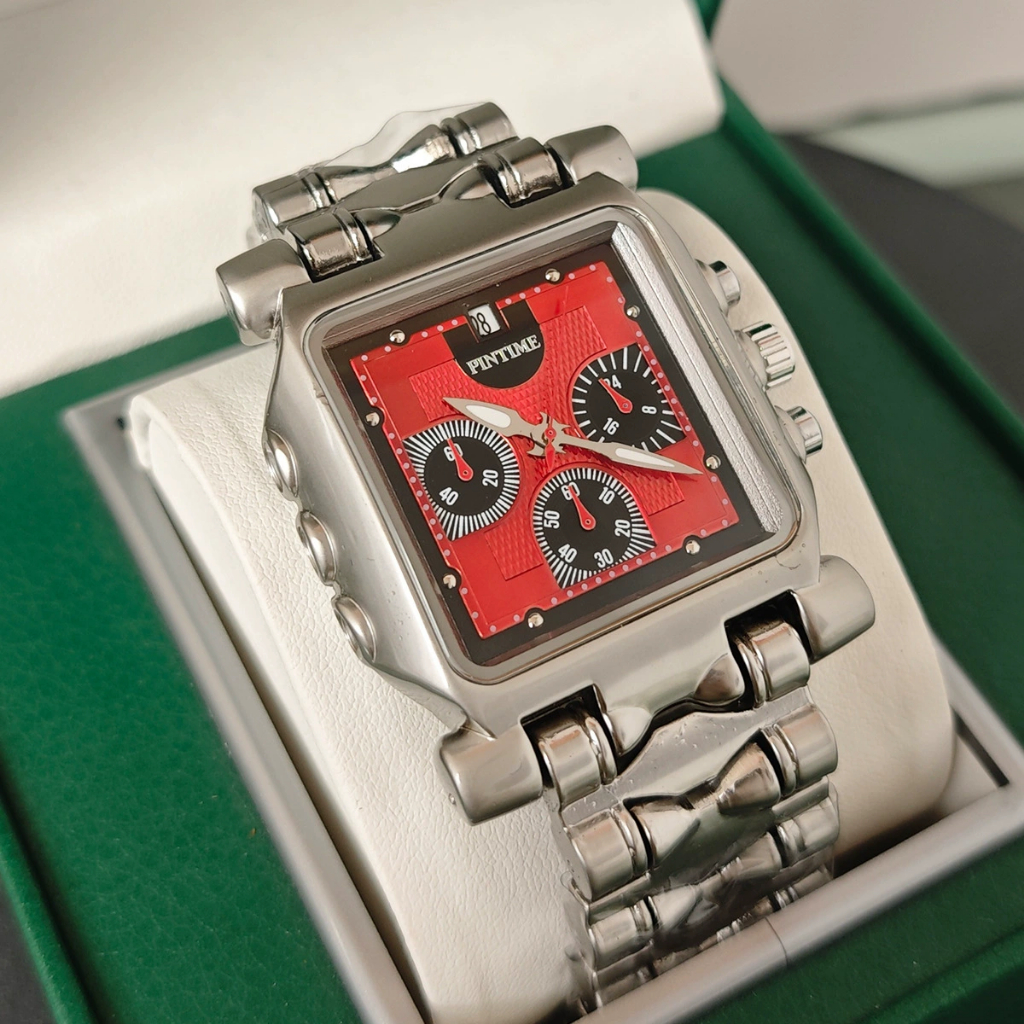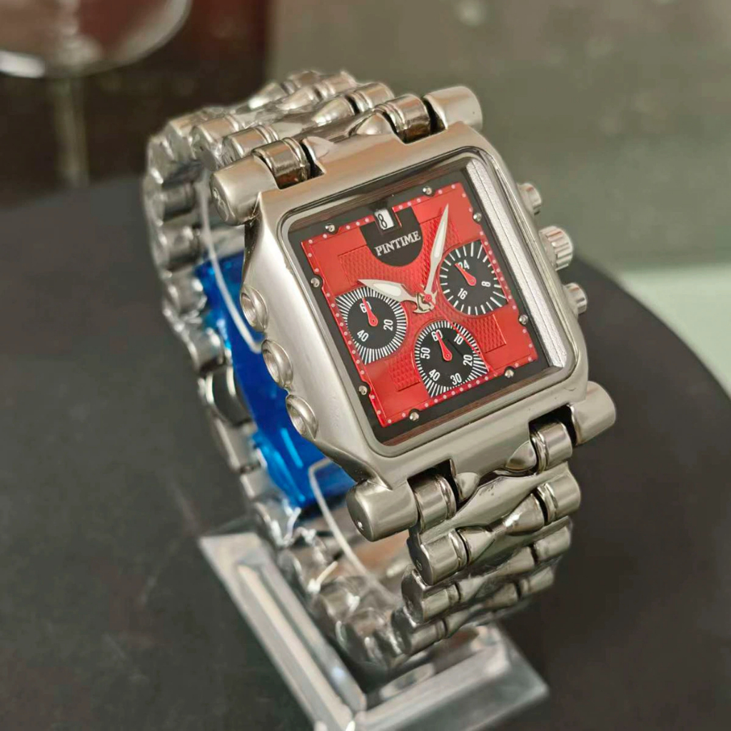 Jam Tangan Pria Keren Desain Persegi Dial Merah Strap Stainless Steel Gaya Y2K Terbaru 2025 Fungsi Multi Trendy Ready Stock