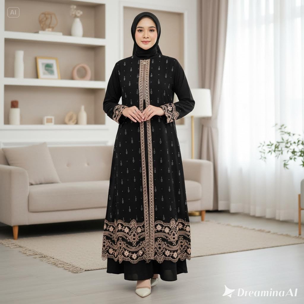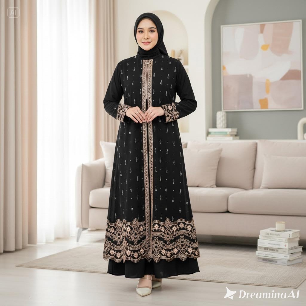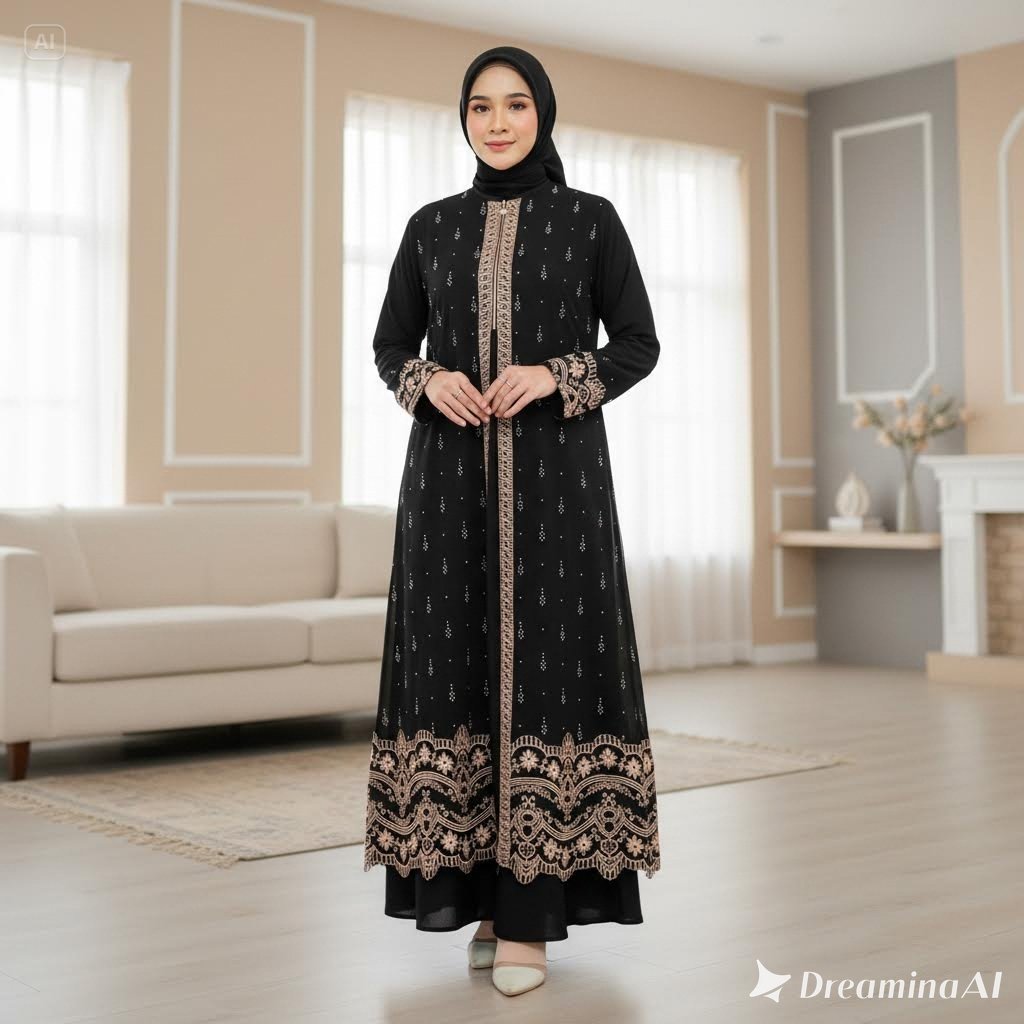 Gamis Wanita Abaya Hitam Elegan Mewah Pesta Lebaran Motif Payet Bordir