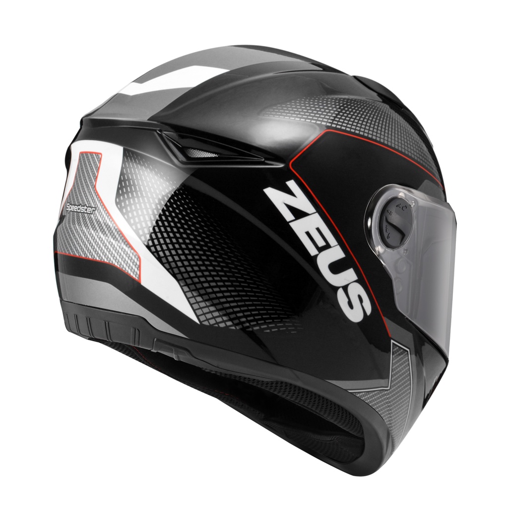 ZEUS ZS-811C BLK AL6 WHI RED FULL FACE SINGLE FLAT VISOR (FREE DARK SMOKE VISOR)