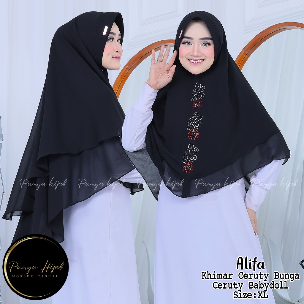 hijab khimar 2 layer jumbo syari bunga jilbab Ceruty babydoll punya hijab
