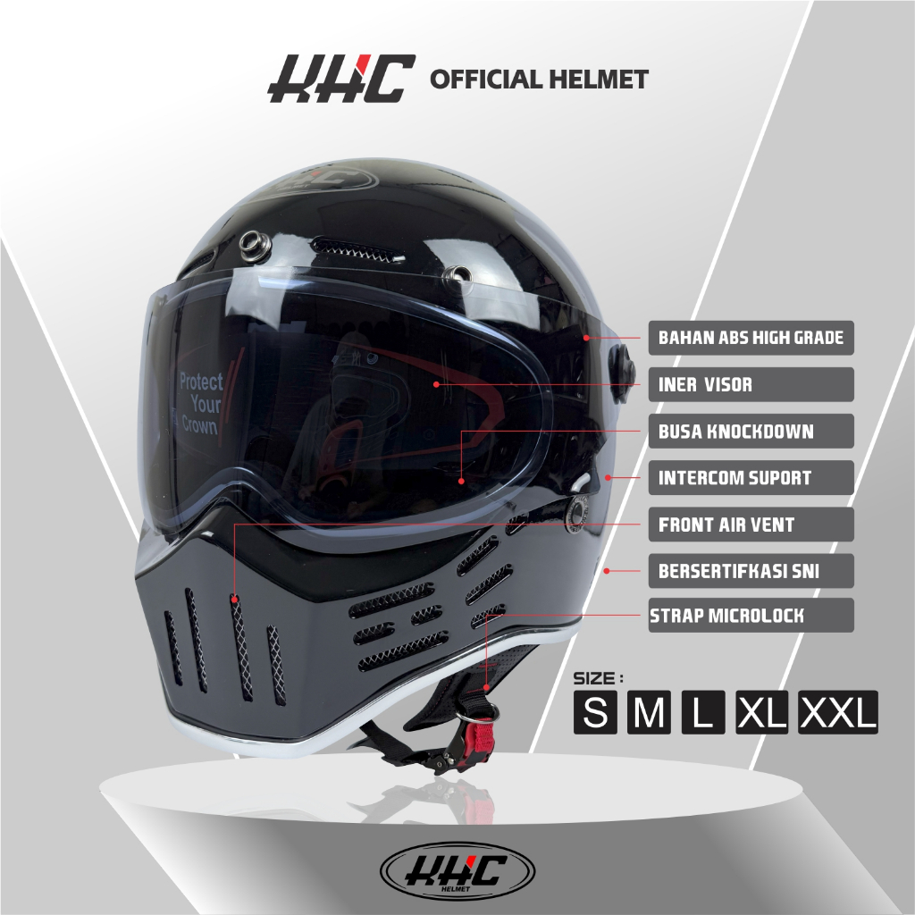 KHC Helm Cakil M30 List Chrome Kaca Luar Full Face Retro Klasik Original Inner Visor