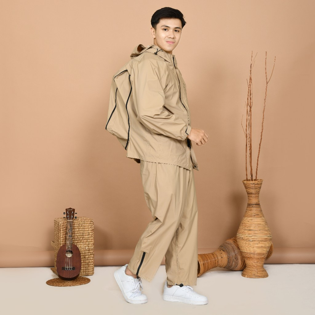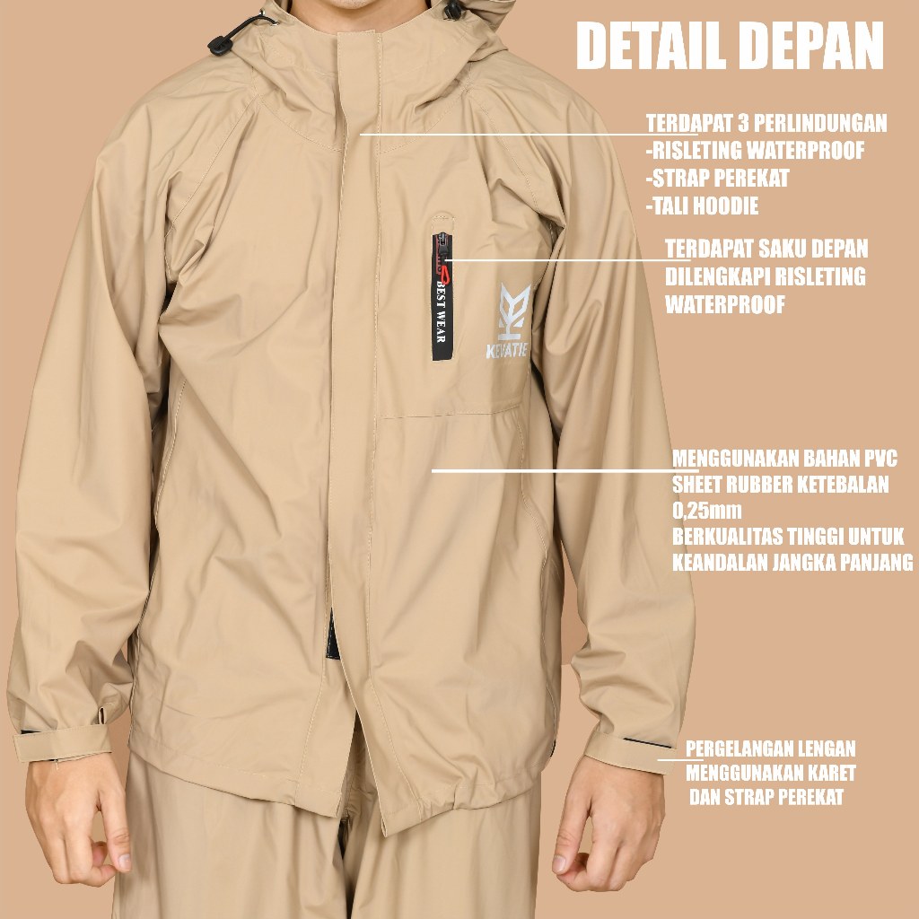 Kevatie Jas Hujan Backpack Series Cream-Jas hujan ransel kevatie Pria Wanita Bahan PVC Jas hujan Tas Belakang