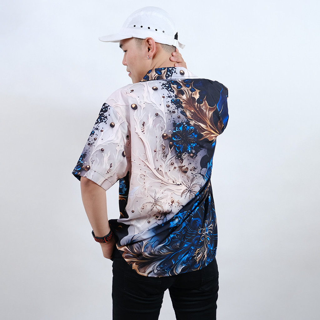 Dowear Baju Kemeja Motif Cewe Cowo Motif Full Printing Oversize Pria Wanita Outdoor ELEGANT BLUE 241