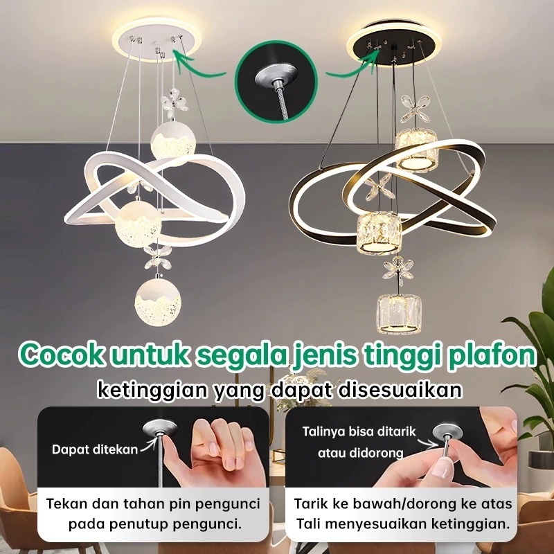 Lampu Gantung LED Kamar/ Ruang Tamu/Dapur Aesthetic/ Lampu Hias / Lampu Hias Gantung / Lampu Gantung Kristal Include Remote Control 32 48 56 68 Watt Minimalis