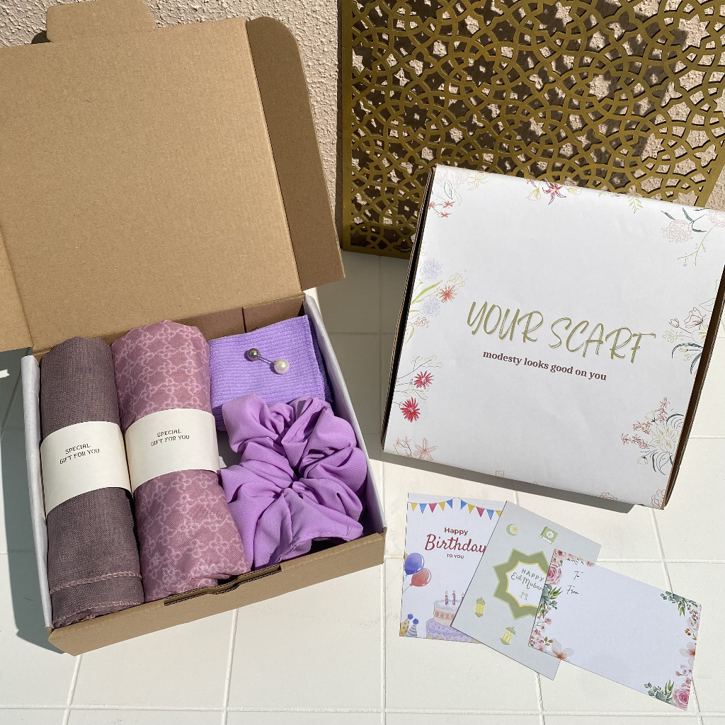 Hampers Hijab 5in1 Voal Segi Empat Premium Motif | Kado Hadiah Ulang Tahun, Nikahan, Lebaran, Wisuda, Anniversary, Guru