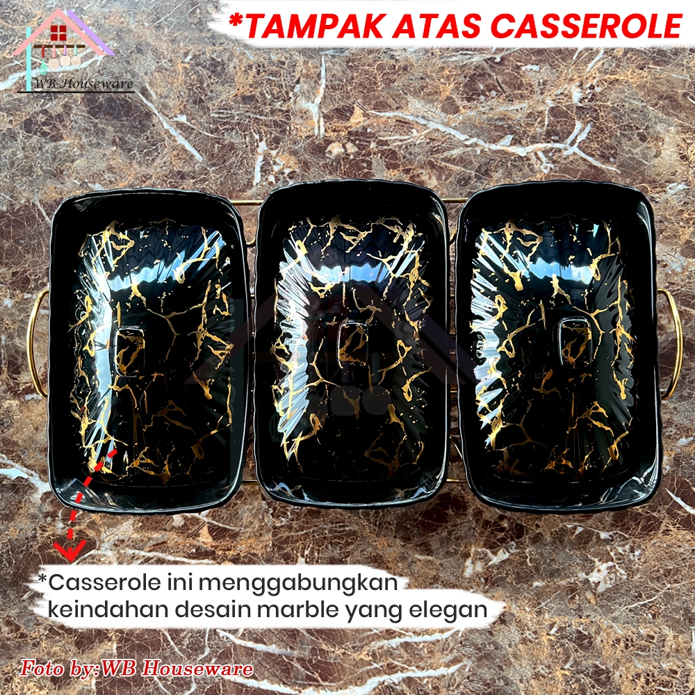 FIORENZA 7pcs prasmanan set segi + tutup + rak motif marble duluxe series keramik / premium casserole set with rack / food warmer type 988
